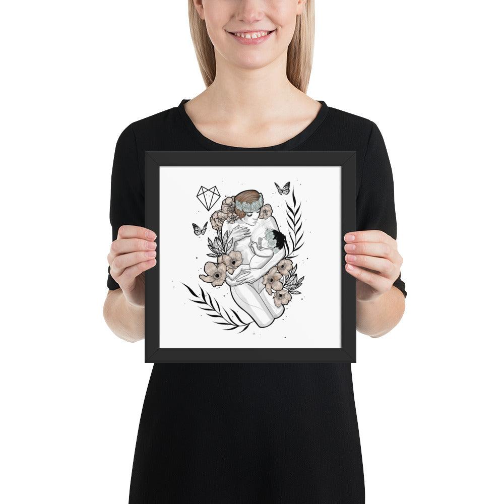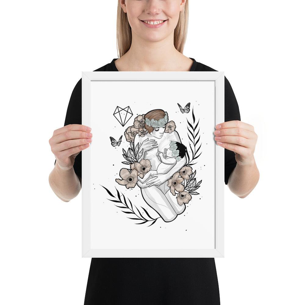 Framed poster printed on high-quality paper, with a partly glossy, partly matte finish.