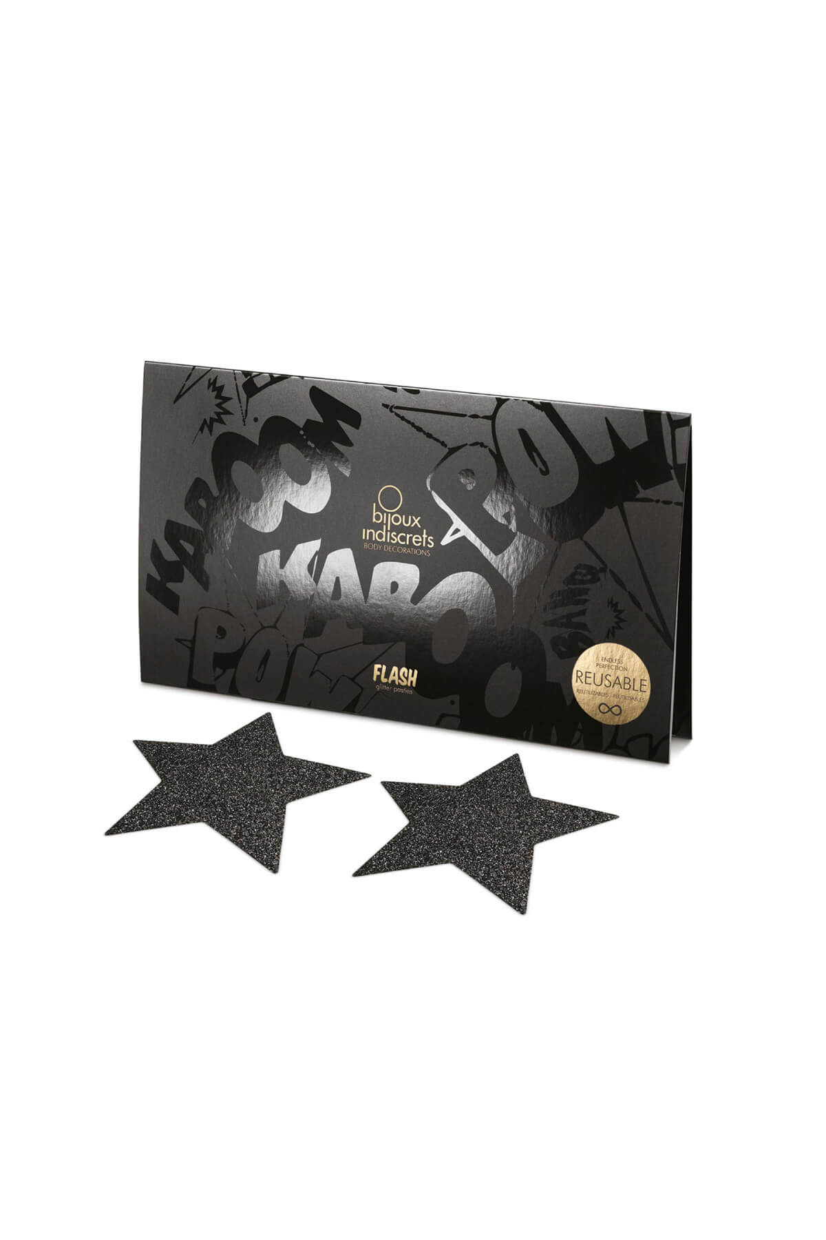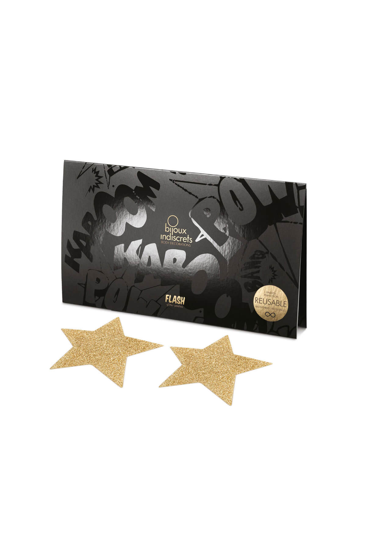 Flash is a collection of shimmering body art by Bijoux Indiscrets that comes in three dazzling shades, gold, silver and black.