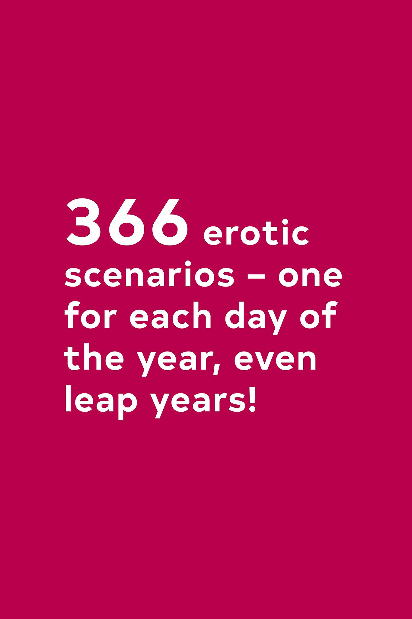After all these years of thinking 69 was our lucky number, the perpetrators of Nerve.com’s wildly popular “Position of the Day” have hand-picked 366 of their very best erotic scenarios into one gloriously chunky, deeply inspiring, and hilarious compendium. Yes, that’s 366 - one for each day of the year plus a little something special for leap year!