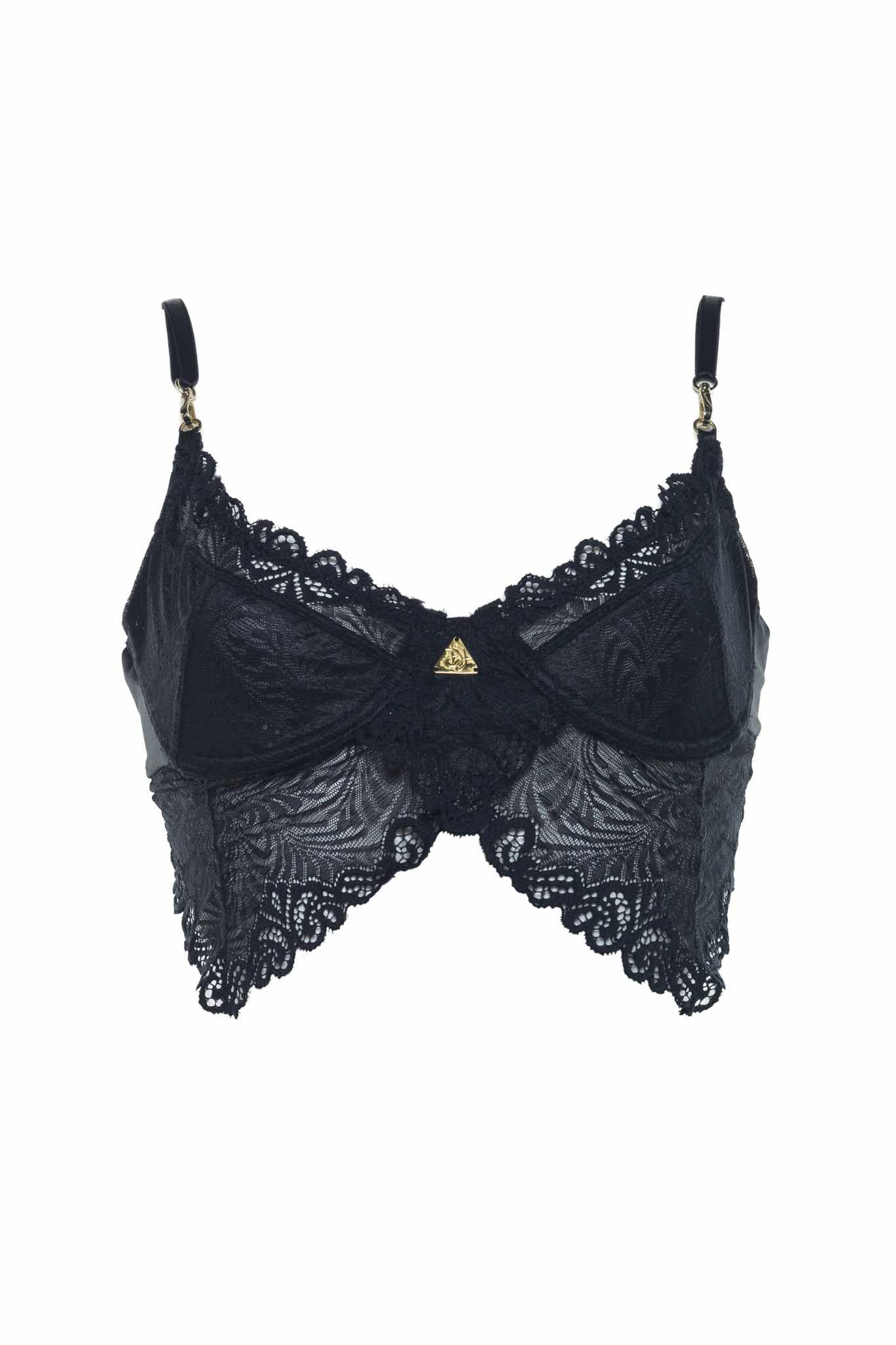 Elegant lace bra with adjustable back and shoulder strap, gold clasp and ring embellishment. Perfect for high end events, luxury settings, intimate evenings and casual streetwear attire. Made with Signature Lace by Demery Jayne.