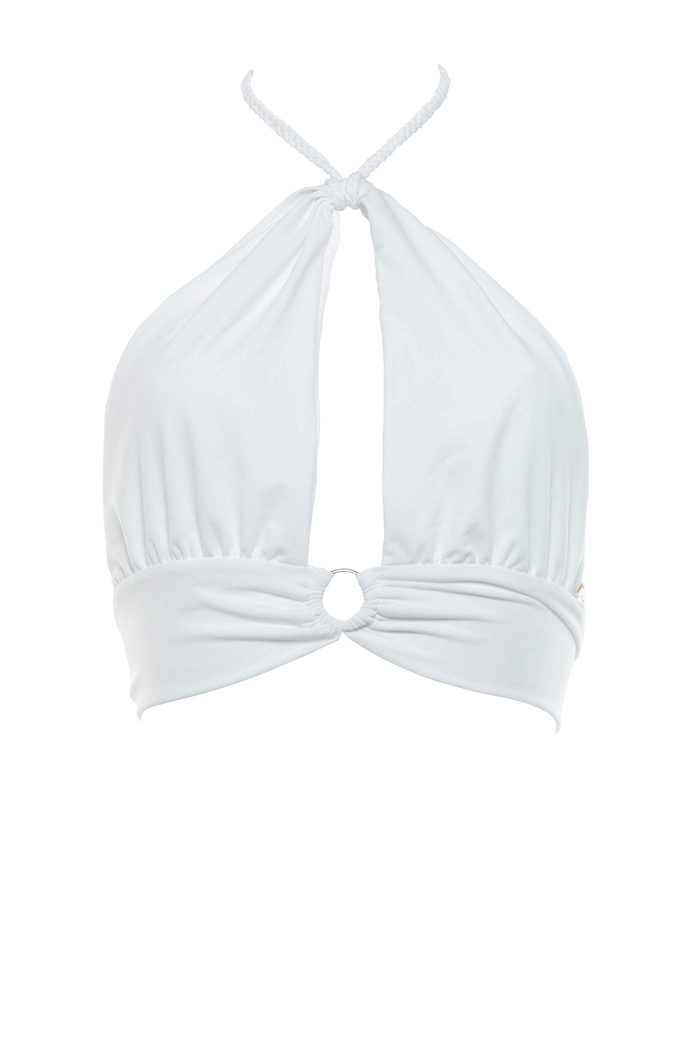 Multifunctional, versatile top with braided ties, gold ring embellishment, and long sash back ties. The perfect addition to complement all occasions. From the water, to elite evening events this piece will take you there. Made flawlessly in Demery Jayne signature fabrics.