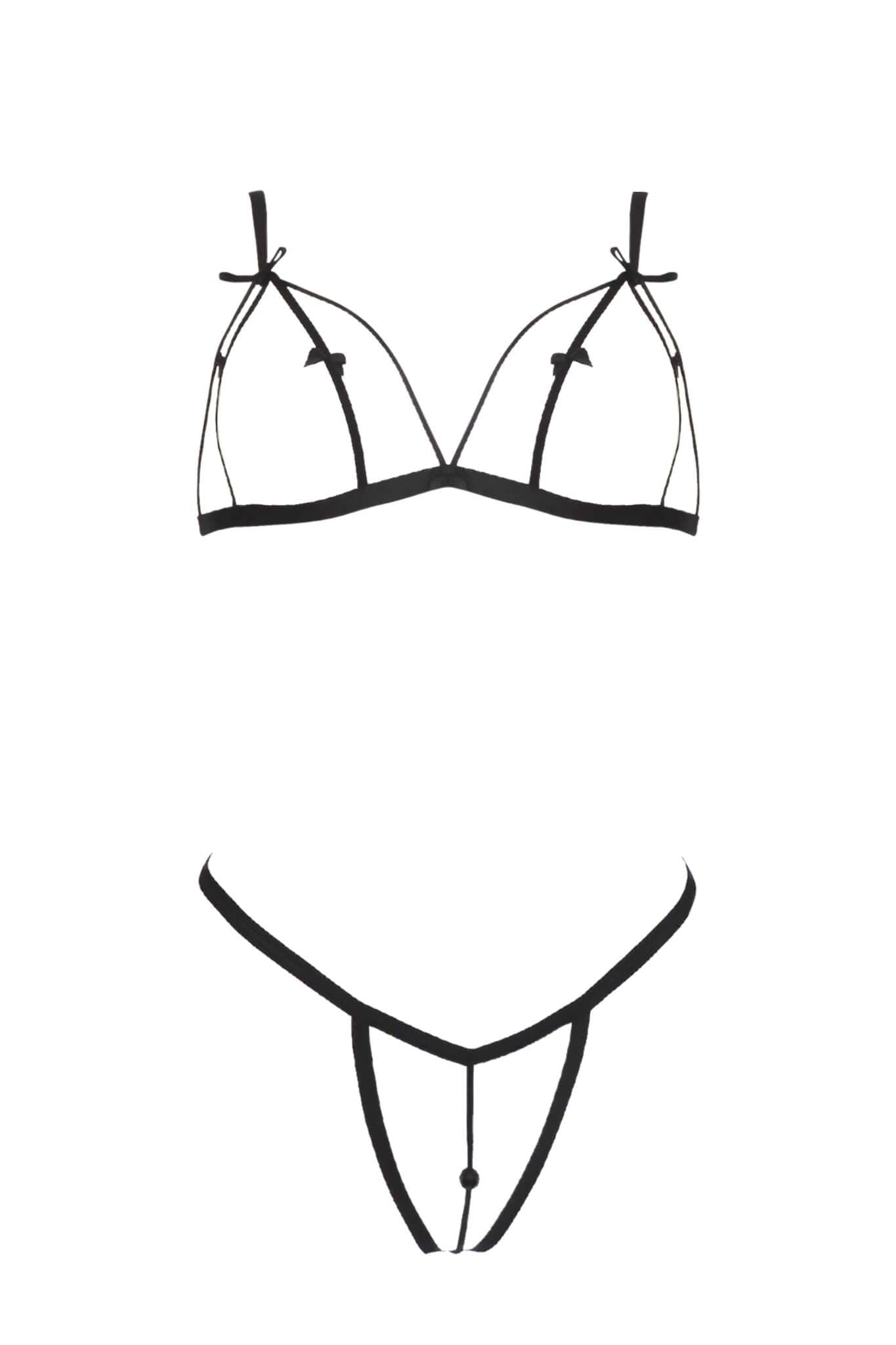 Matched with the Mia Open G-string, made of soft elastic bands decorated with a black artificial pearl threaded onto the front.