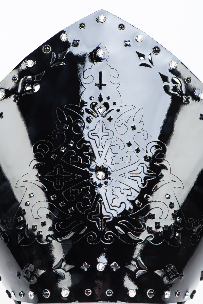 Confess your desires wearing our Confessional Mitre. All eyes will be on you wearing our handcrafted headdress. Seduce in Style!