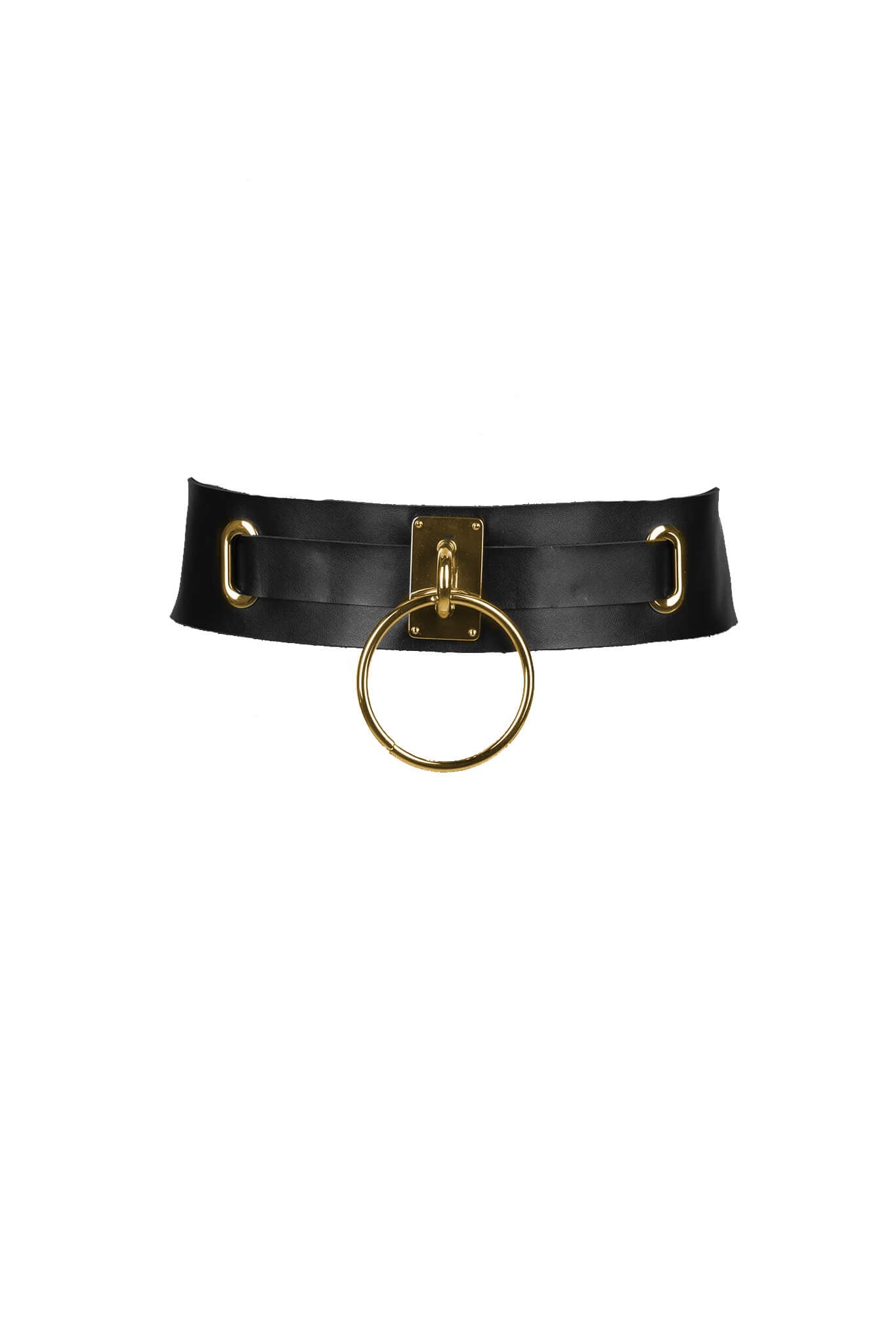 Handcrafted from premium Portuguese leather, this belt features nickel-free hardware in your choice of silver-tone, gold-tone, or rose gold-tone. The large O-ring at the center adds an edge of toughness and kink, making this belt perfect for both bondage play and fashionable layering. The adjustable leather strap ensures a snug and secure fit, while its sleek design brings a provocative touch to any outfit.