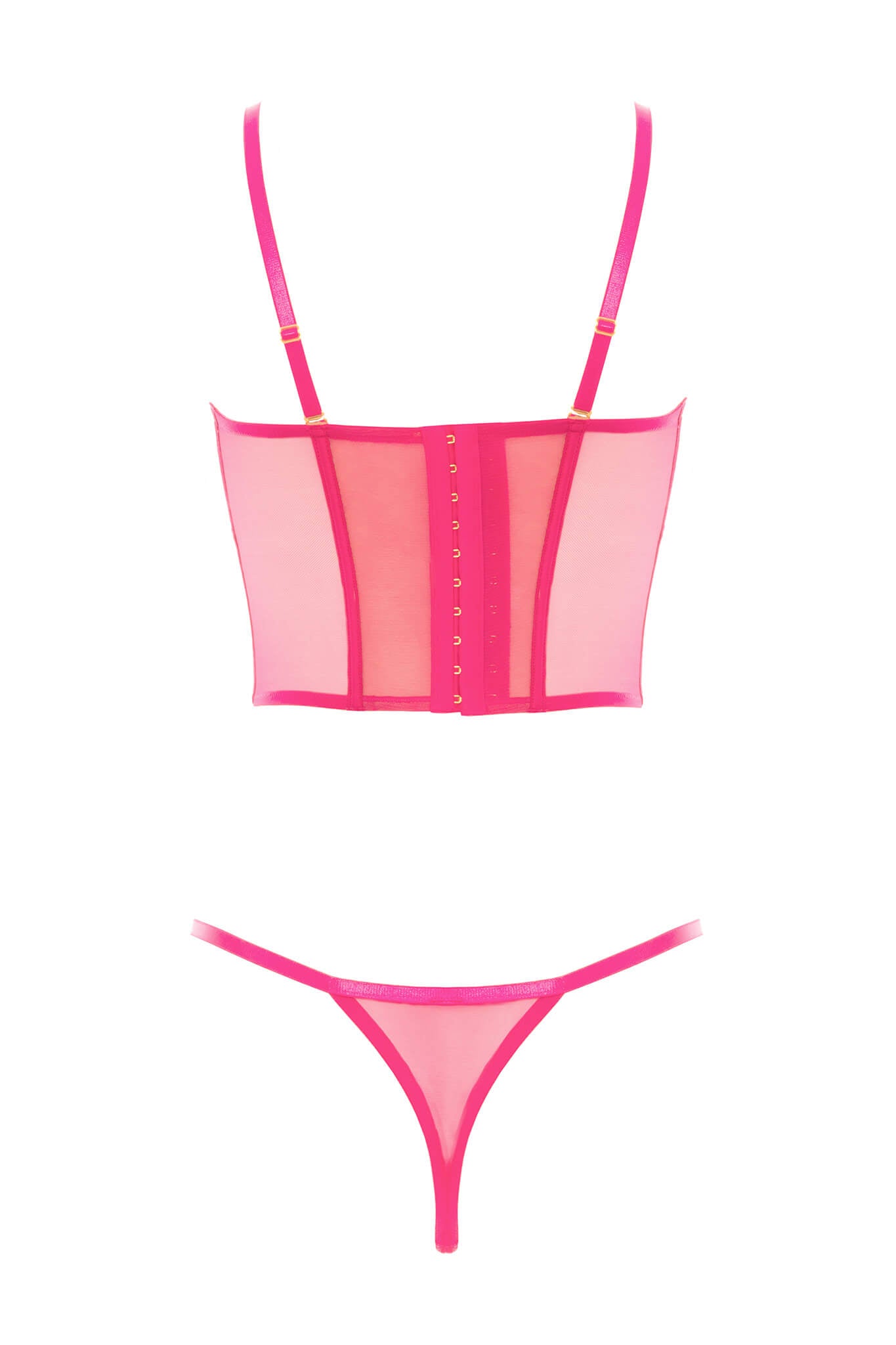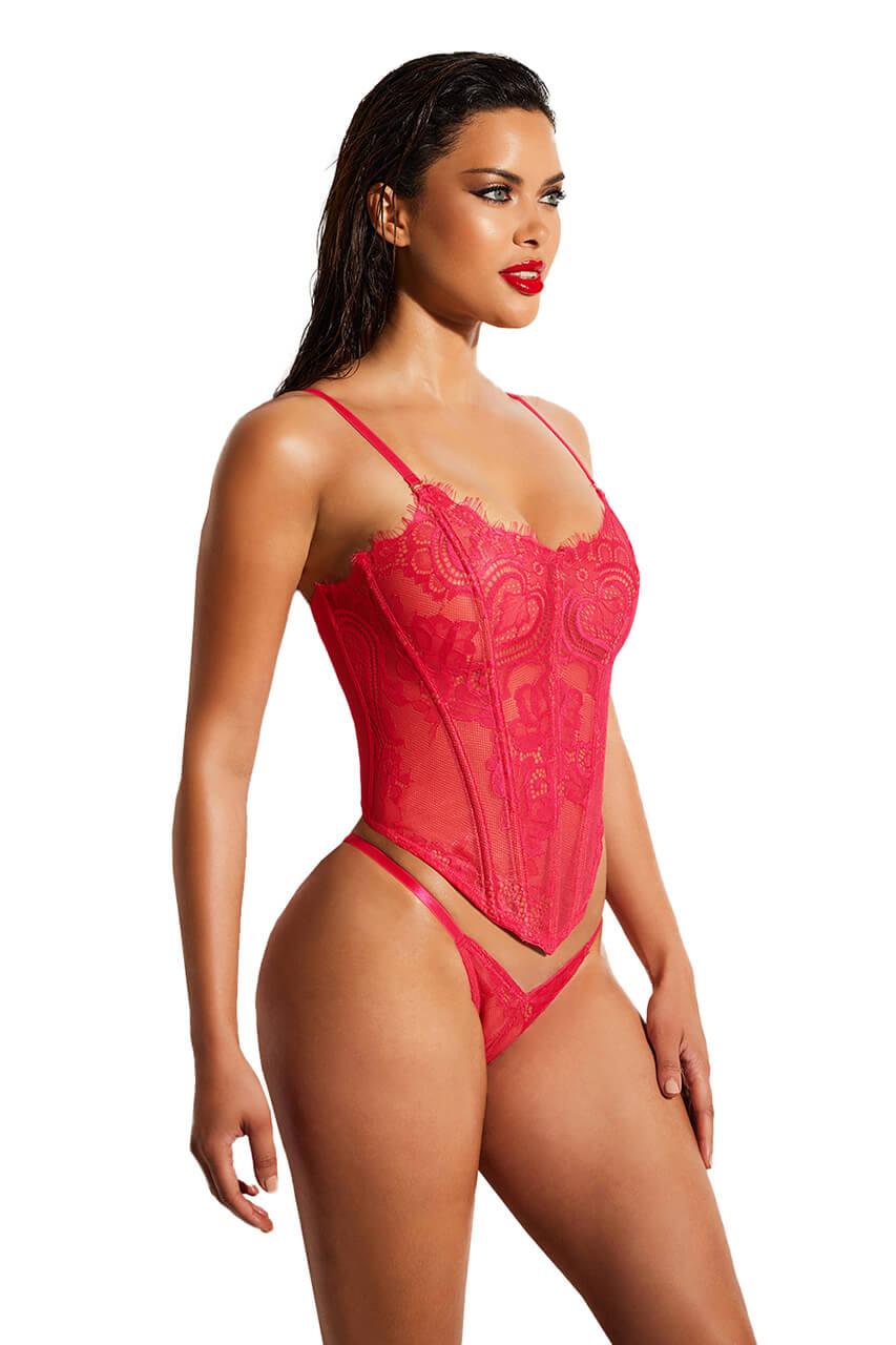 Elevate your lingerie wardrobe with this Cybille Lace Bustier Bra Set, crafted with delicate eyelash lace and lined with boning inserts for a structured shape and comfortable fit. The set includes a matching thong panty for a coordinated look and removable, adjustable shoulder straps for versatile styling. Enjoy luxurious, high-end lingerie with an elegant, tasteful finish.