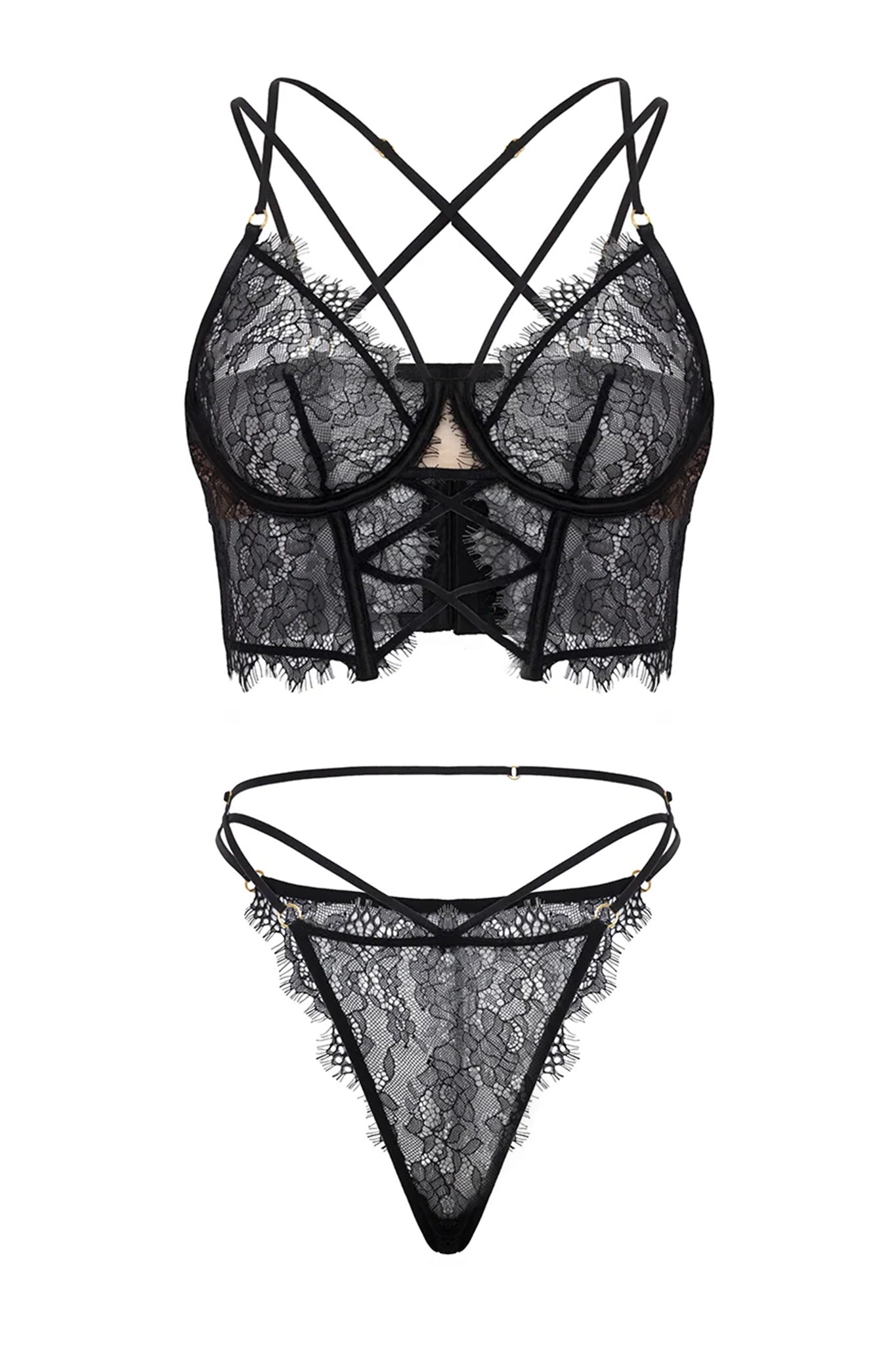 Indulge in luxurious comfort and elegance with our Indie Sheer Bustier Bra Set. Crafted from delicate eyelash lace and mesh, this set features unlined underwire cups for a natural shape and narrow adjustable shoulder straps for a personalized fit. The cheeky back adds a playful touch to this sophisticated and exclusive design.