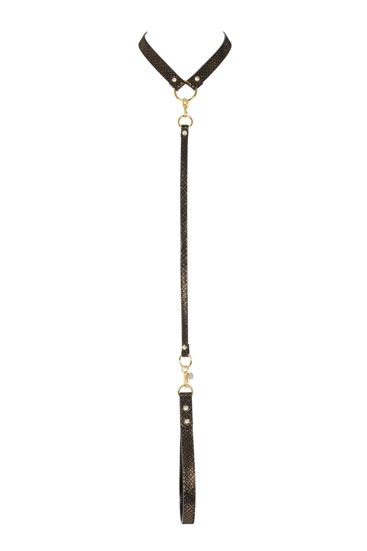Command attention with our Lush Leash! Featuring detachable black gold foil print leather lead, 18K gold trims and Swarovski® crystal rivets. Wear the collar with your favorite outfit and attach the lead for an adventurous erotic moment.
