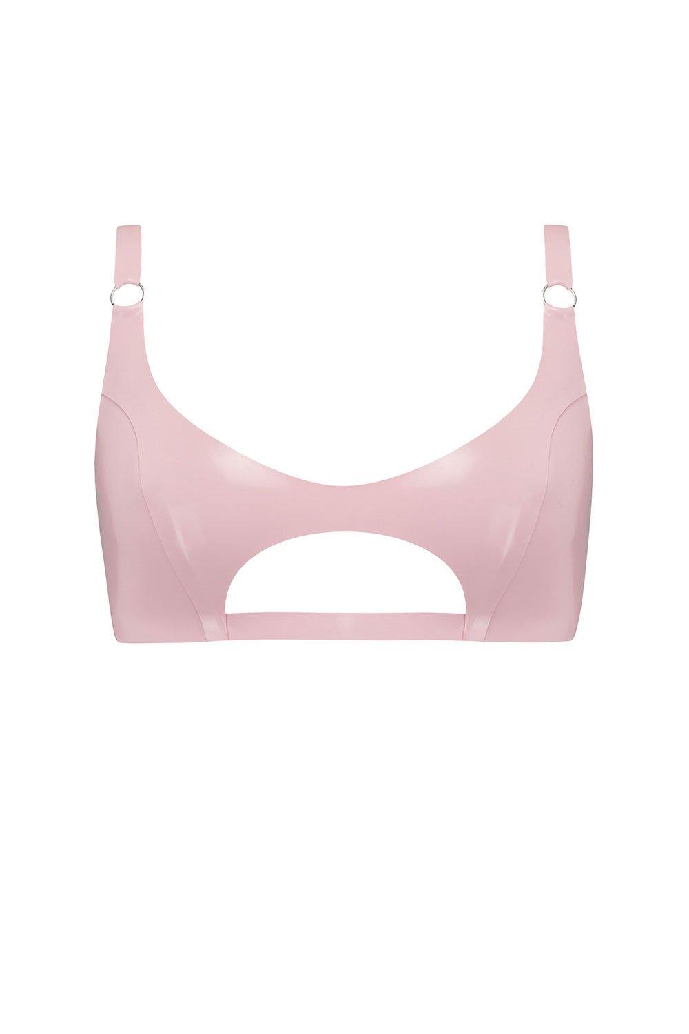 Featuring a cut out section to the front, the Baby Pink Bralette creates a beautiful shape in the wearer. Contoured to your body and created in double thickness quality latex, the Bralette provides support and lift for all your curves. Pair with our skirts, knickers or leggings to complete the look.