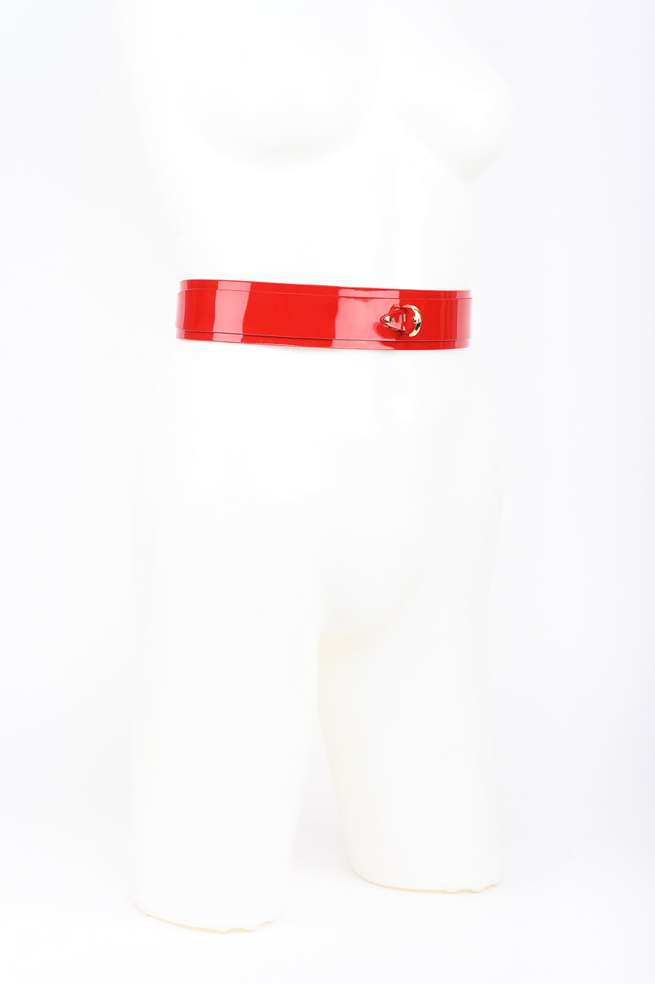Ultimate Glamour! Our Roja Belt features 24K gold plated detailing and is handcrafted from luxurious Italian red patent leather. Style over a pencil skirt for a high fashion look. Super versatile!
