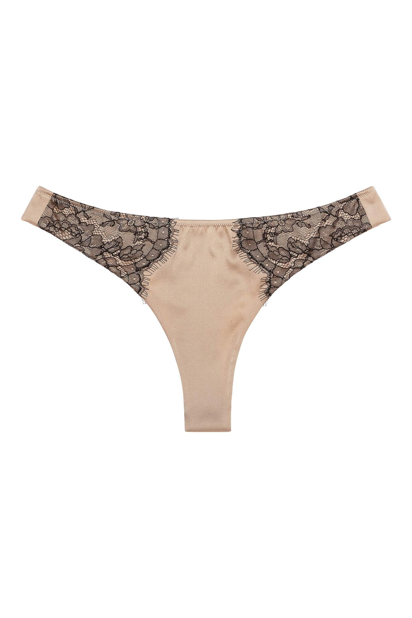 Crafted from luxurious silk and decorated with the finest French Chantilly lace for a romantic twist, this elegant and sexy underwear is almost undetectable underneath clothing. The colour, Champagne gold, is carefully crafted to suit most yellow tone skin to create the ultimate nude effect under white garments.