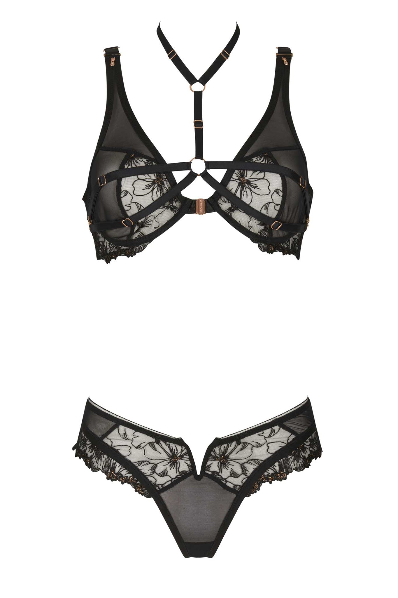 Our all-new Ivy Embroidery Harness Set is about to become your newest lingerie obsession! Perfect for those who want a sultry and fashionable pick, this set is made of mesh and embroidered tulle for an ethereal look. The harness bra provides you with both a push up effect and detachable harness that will make heads turn.