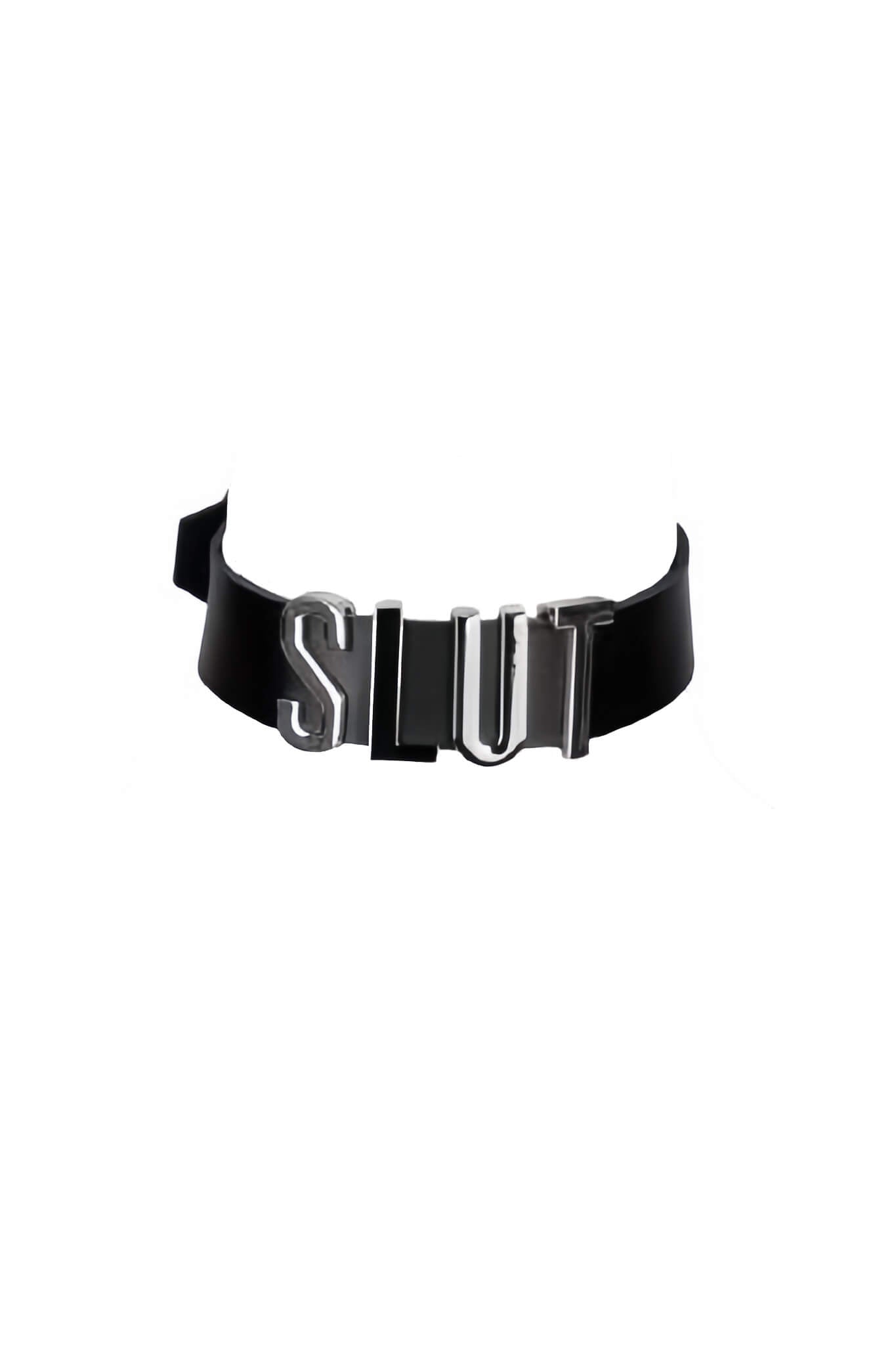 Proudly display the word “SLUT” for an edgy, provocative look, or take control by customizing it with up to six letters to match your kinkiest nickname. Whether you’re embracing your role or creating your own, this collar is sure to add a powerful statement to your collection.