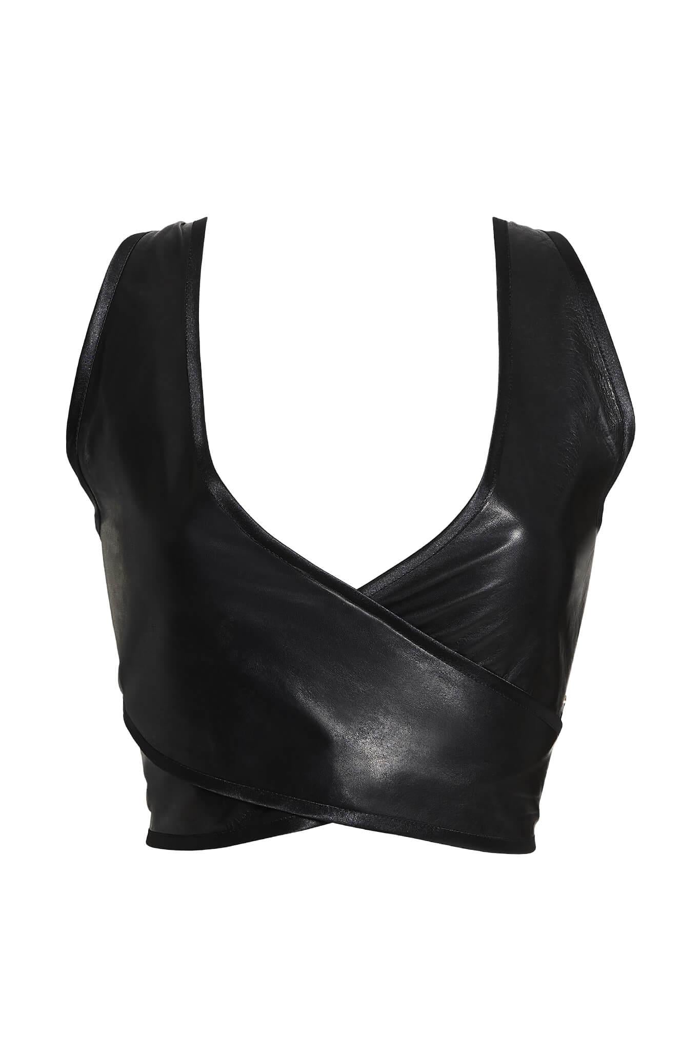 This luxury bra has two decadent leather panels that wrap sensually around you and hook together at the back, with a sly wink to a bondage-inspired aesthetic. Adjustable rear back straps and shoulder straps allow you to create your perfect fit.
