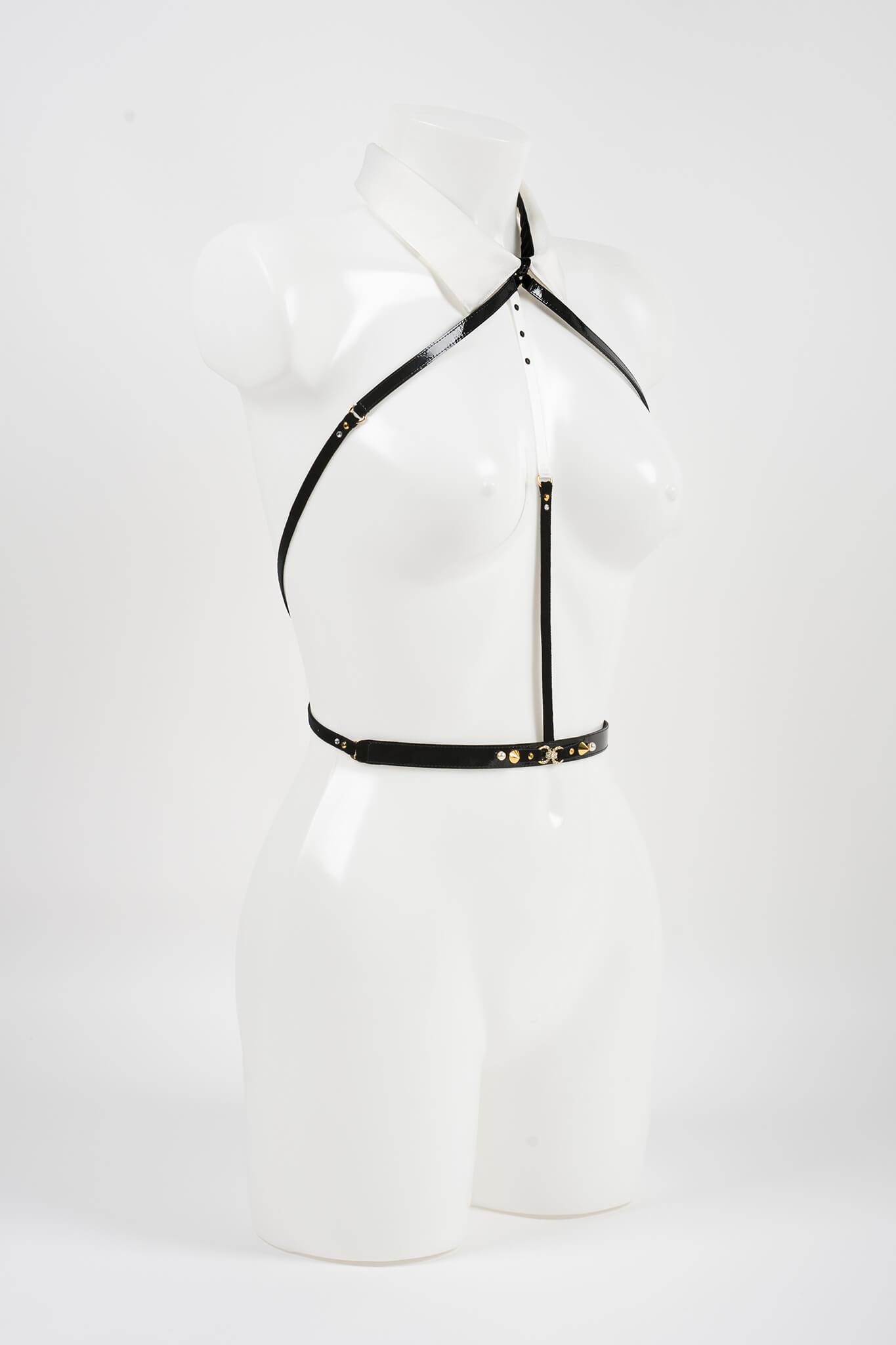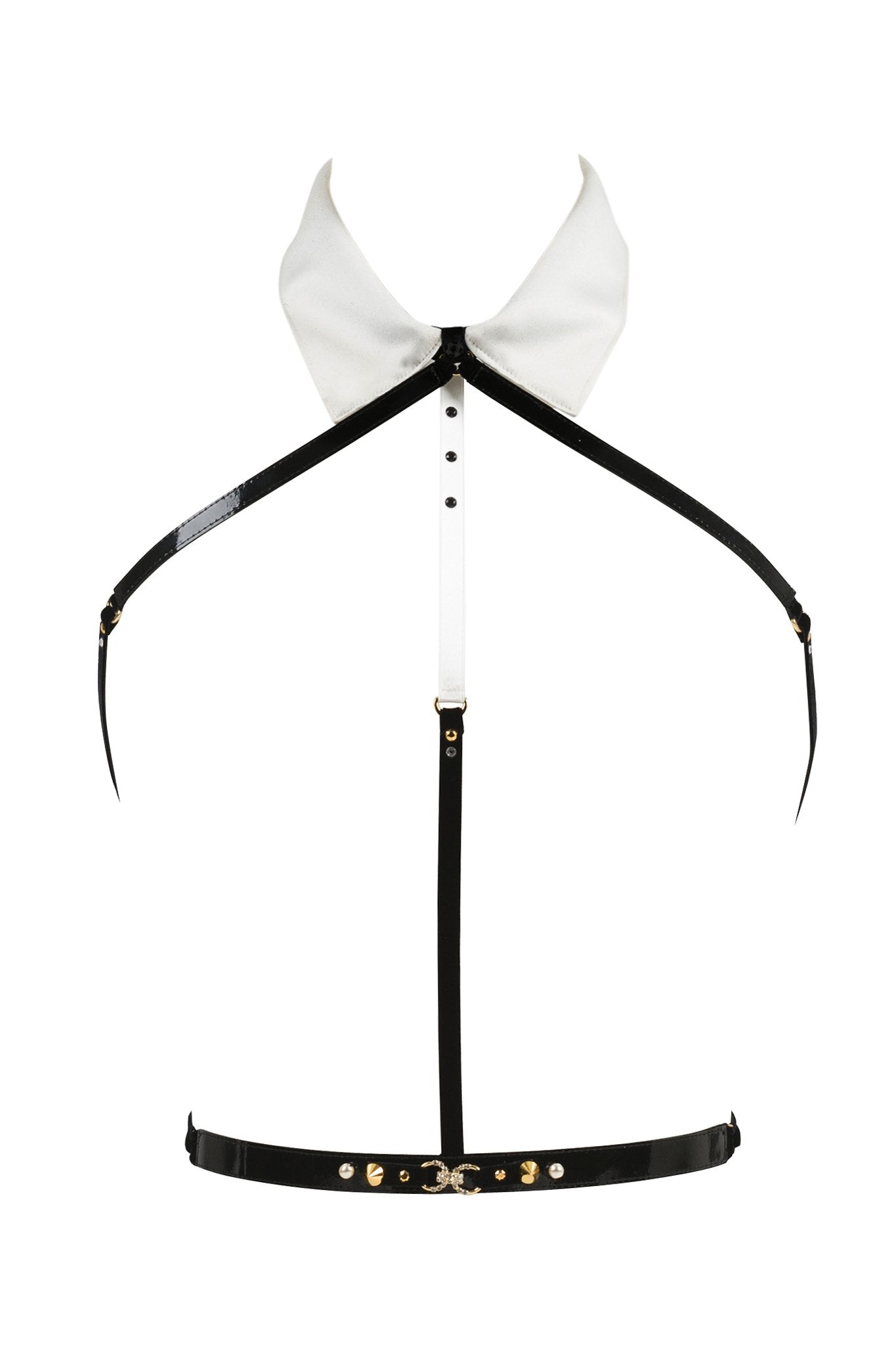 - Ivory Crepe Satin Collar Patent Leather Harness