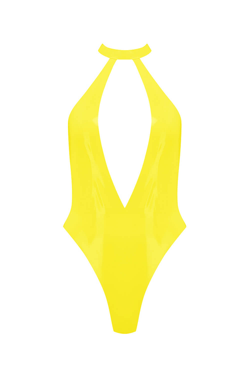 With a choker fit to the neck and a plunge neckline to the front and back, the Yellow Latex Body is a stand out staple for your Elissa Poppy collection. Featuring a high leg design and tailored panelling, this thong Body offers you the most flattering shape possible. Fastened using an exclusive Elissa Poppy branded buckle, double thickness quality latex to the choker panel, every little detail has you covered.