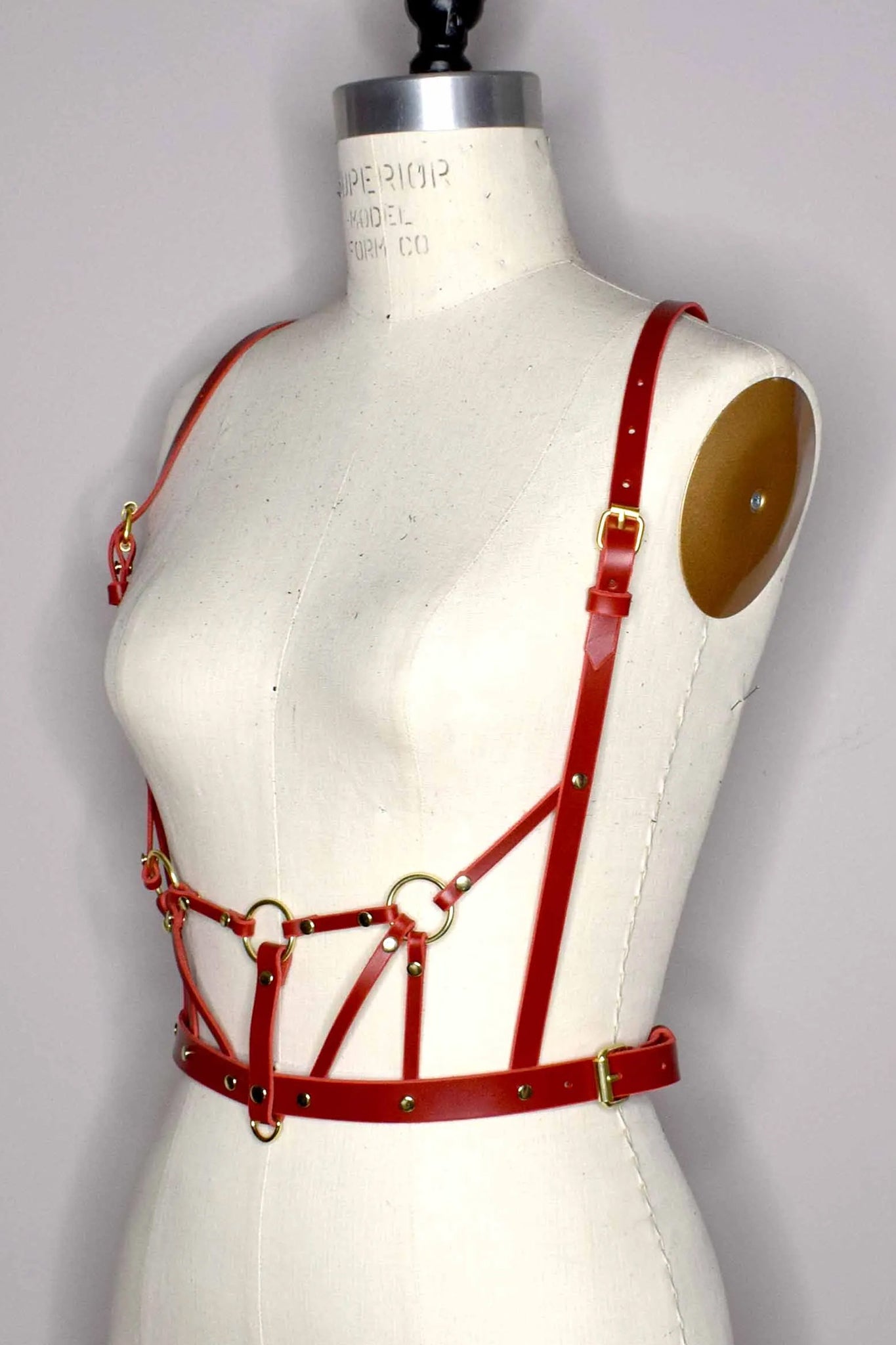 Inanna Strappy Leather Harness Bodice Love Lorn Lingerie