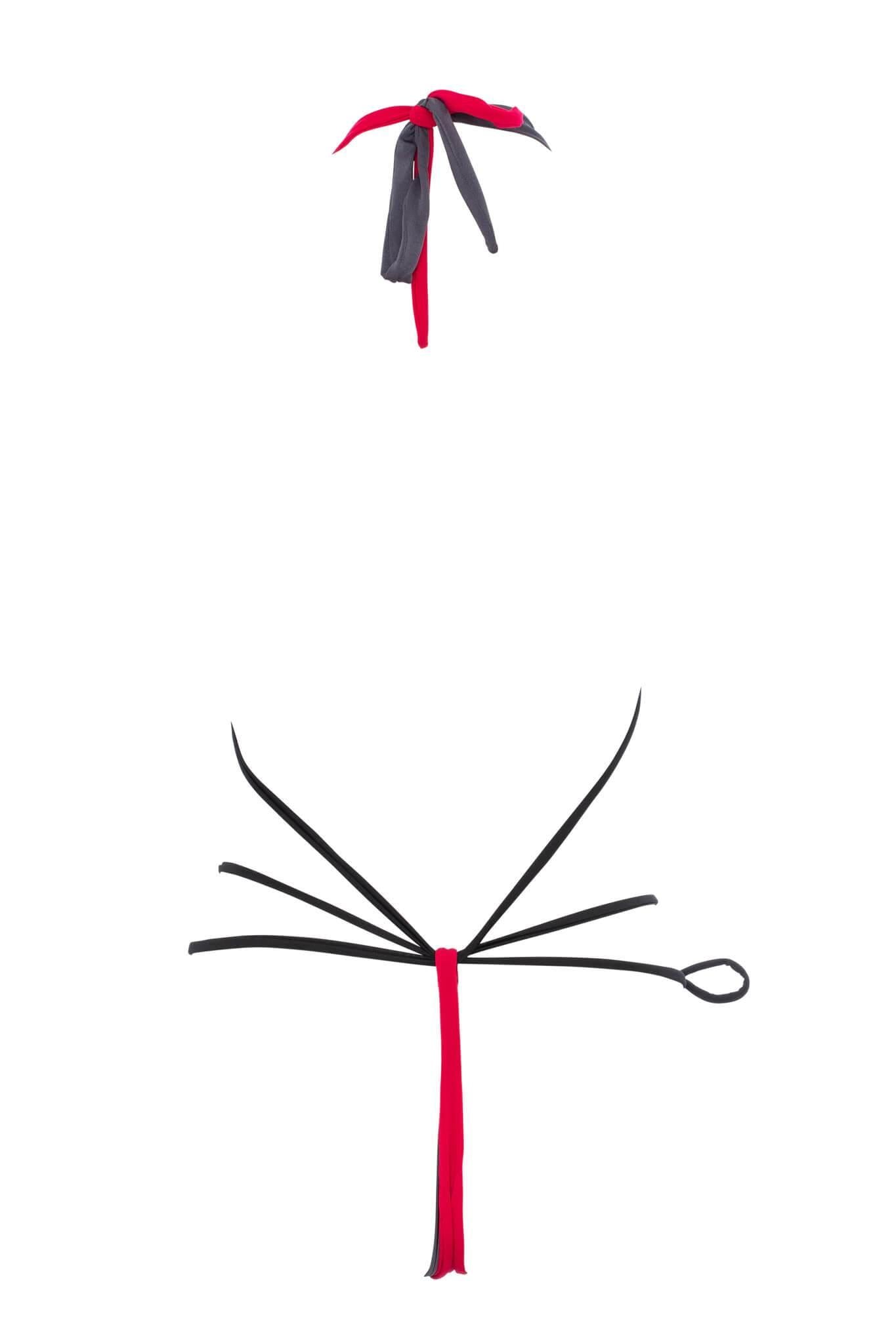 “Described as a ‘one piece bikini’, the Hot Couture Porto Incanto Trikini from Darkest Fox feels like wearable modern art. The two-part micro bottom is ultra eye-catching, made from layers of dark grey and cherry red to match the top.” The Lingerie Journal • Original Article